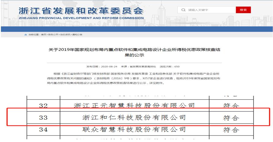 和仁科技榮列“2019年度國家規(guī)劃布局內(nèi)重點軟件企業(yè)”